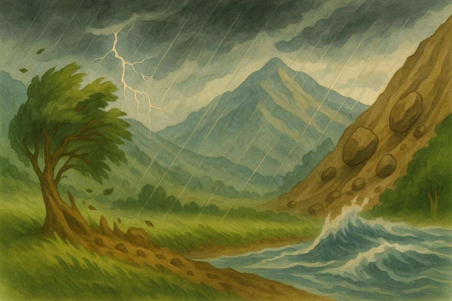Ce type d'événement met en jeu plusieurs processus physiques complexes : rupture de pergélisol, fonte glaciaire, surcharge hydrique du substrat rocheux, et libération brutale d'énergie gravitationnelle. Le glissement de terrain se distingue d'autres aléas par sa dynamique : il peut s'agir d'un lent affaissement ou d'une coulée ultrarapide. Dans le cas de Blatten, on parle d'un "flow slide" (coulée de débris), souvent amplifié par la topographie escarpée et les conditions climatiques extrêmes.